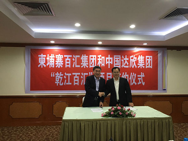 達(dá)欣集團(tuán)第一個(gè)海外項(xiàng)目——乾江百匯于4月19日在柬埔寨金邊大酒店簽約,該項(xiàng)目是由柬埔寨百匯投資集團(tuán)與達(dá)欣集團(tuán)以共同合作、共同開發(fā)的新型商業(yè)模式來(lái)運(yùn)營(yíng)。柬埔寨百匯集團(tuán)林財(cái)通勛爵、林寶庭總經(jīng)理與達(dá)欣集團(tuán)董事長(zhǎng)馬和軍、黨委書記劉厚純、副總經(jīng)理徐仁忠、上海佩里建筑規(guī)劃設(shè)計(jì)公司創(chuàng)始人鄭翊等共同見(jiàn)證了項(xiàng)目的簽字活動(dòng)。