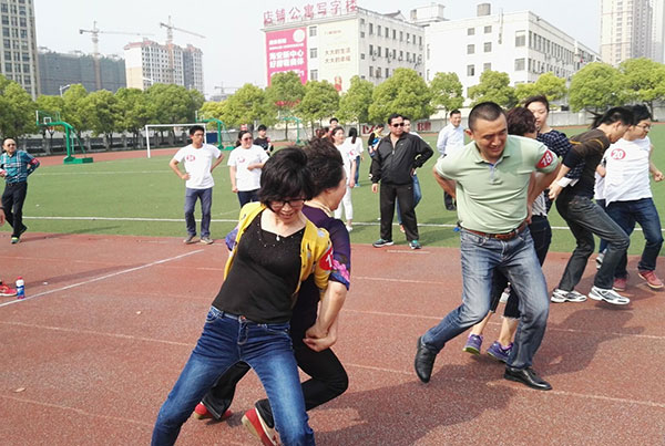 為豐富職工的文化生活,樹立運動健康意識,增強企業(yè)凝聚力,5月14日下午,公司工會組織26名職工代表,參加了縣建工系統(tǒng)在海陵中學(xué)舉行的2016年職工體育競賽活動,本次競賽項目分別是:背夾球、跳繩、帶足球繞桿和拔河四個項目。賽場上,大家各顯身手,頑強拼搏、奮勇爭先,盡情地享受著運動帶來的樂趣與歡樂,充分展示了達欣人積極向上的精神狀態(tài)。經(jīng)過激烈爭奪,我公司獲得拔河團體二等獎,跳繩和帶足球繞桿分別獲得個人二等獎。