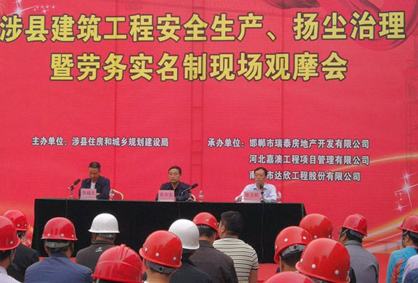 河北涉縣建筑工程安全生產(chǎn)、揚(yáng)塵治理暨勞務(wù)實(shí)名制現(xiàn)場(chǎng)觀摩會(huì)在第三工程公司御湖天城項(xiàng)目召開