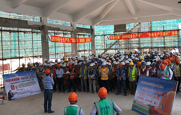 項目部認(rèn)真組織精心策劃,項目負(fù)責(zé)人馬寧偉從“強力推動、精心組織、狠抓落實、確保安全”四個方面進(jìn)行動員,項目部將集中開展“防風(fēng)險、除隱患、遏事故”主題宣講、安全宣傳咨詢、事故警示教育、應(yīng)急救援演練等系列活動。同時舉行了項目全體施工人員安全月簽名活動,并現(xiàn)場宣布“安全生產(chǎn)月”活動啟動。會上要求,項目始終貫徹執(zhí)行集團(tuán)“安全高效鑄精品 環(huán)保誠信創(chuàng)輝煌”的安全管理方針,把項目安全生產(chǎn)擺到更加突出、更加重要的位置,動員全體員工以“安全生產(chǎn)月”活動為契機(jī),以活動促工作,以活動促安全,把全體員工的安全意識提升到一個新高度,把無錫惠山新城項目的安全工作推向一個新臺階。