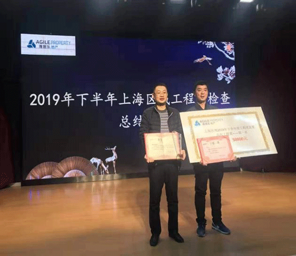 雅居樂地產(chǎn)集團為保證工程質量,激勵區(qū)域內(nèi)各承建公司樹立優(yōu)秀總包單位標桿,實施全年上、下半年度區(qū)域內(nèi)檢查評比,第一工程公司承接的中央府項目在雅居樂地產(chǎn)集團上海區(qū)域上半年檢查評比中獲得了“雅居樂上海區(qū)域總承包工程第一名”的殊榮。集團公司董事、第一工程公司經(jīng)理杭小建受邀在雅居樂地產(chǎn)集團上海區(qū)域上半年度總結大會上領獎并作經(jīng)驗交流。