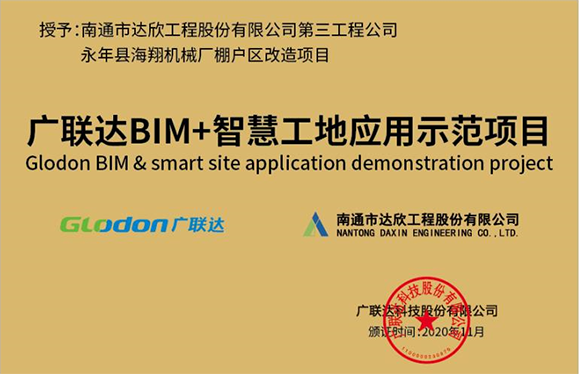 調(diào)研期間與項(xiàng)目BIM團(tuán)隊(duì)人員進(jìn)行了互動(dòng)交流,經(jīng)過一系列的驗(yàn)收標(biāo)準(zhǔn)考核后,最終授予該項(xiàng)目“廣聯(lián)達(dá)BIM+智慧工地應(yīng)用示范項(xiàng)目”稱號(hào)。
