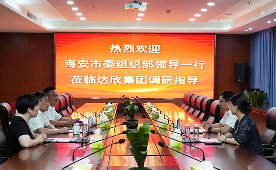 7月1日下午,海安市委常委、組織部部長、統(tǒng)戰(zhàn)部部長錢旭東,“兩新”工委書記、組織部常務(wù)副部長吳蘭,赴集團調(diào)研指導(dǎo)。集團董事長馬和軍、黨委書記劉厚純等陪同。
