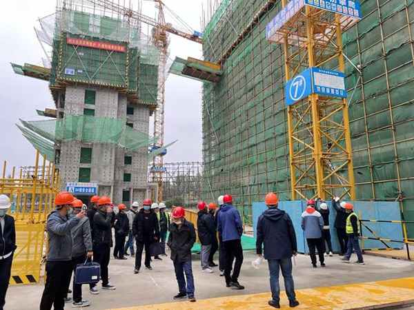 領導們主要觀摩了誠園二期5#地塊項目集中交底樣板展示區(qū)、實體工藝樣板展示區(qū)、毛坯交付樣板展示區(qū)、公區(qū)交付樣板展示區(qū)、現(xiàn)場安全體驗館、材料集中加工區(qū)、主體結構實體質量及安全生產標準化在現(xiàn)場的應用等。工程質量和安全工作方面的亮點做法得到了現(xiàn)場觀摩團的一致認可和贊賞。