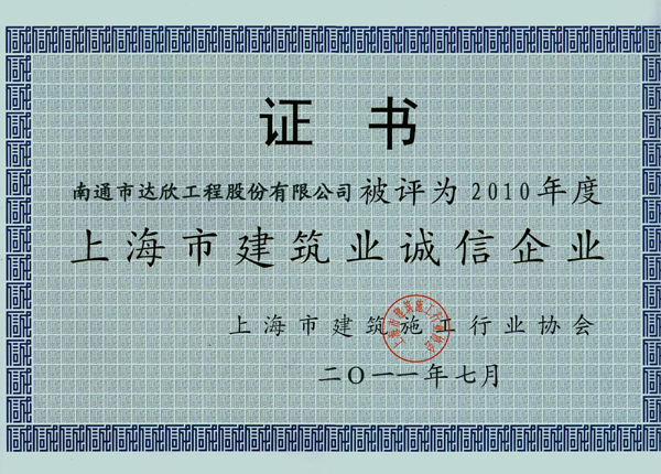 “上海市建筑業(yè)誠信企業(yè)”評選活動由上海市建筑施工行業(yè)協(xié)會組織,每年舉辦一次,宗旨在于不斷推進建筑施工企業(yè)的行業(yè)自律和誠信建設(shè),提高建筑施工企業(yè)的綜合實力,促進行業(yè)健康發(fā)展。第一工程公司在誠信體系建設(shè)中,充分發(fā)揮表率作用,勇當(dāng)誠信龍頭。通過管理創(chuàng)新,將企業(yè)誠信建設(shè)納入公司經(jīng)營管理的全過程。制定誠信體系、誠信教育管理、誠信承諾管理、誠信評價管理等一系列誠信管理制度,推動誠信建設(shè)工作,創(chuàng)出了較好的經(jīng)濟效益和社會效益,同時,也樹立了達欣公司誠實守信的良好社會形象。
