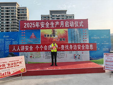 6月2日上午,第十一工程公司以“人人講安全,個(gè)個(gè)會(huì)應(yīng)急—查找身邊安全隱患”為主題的安全生產(chǎn)月啟動(dòng)儀式,在錦玉滿堂項(xiàng)目舉行。工程公司總經(jīng)理、副經(jīng)理、各科室負(fù)責(zé)人、在疆各項(xiàng)目部項(xiàng)目經(jīng)理、技術(shù)負(fù)責(zé)人、安全員以及錦玉滿堂項(xiàng)目全體職工參加了啟動(dòng)儀式,活動(dòng)由工程公司安全科徐斌主持。