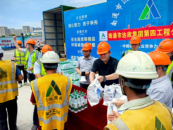 正值盛夏,烈日炎炎,施工現(xiàn)場的工友們不懼高溫,堅守崗位,全力推進項目建設(shè)進度。工程公司總經(jīng)理傅海榮詳細(xì)詢問工友們的工作和生活情況,對大家在高溫下辛勤付出表示衷心感謝。隨后,傅海榮親自將精心準(zhǔn)備的防暑降溫禮品分發(fā)到每一位工友手中,為工友們在炎炎夏日送去一份貼心的關(guān)懷。