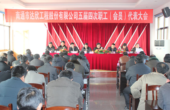 公司五屆四次職工會員代表大會于2月11日召開。主席臺就座的有海安縣總工會常委、組織部長陸威生、海安建管局副局長、建筑工會主席吉遠忠、公司董事長馬和軍、公司黨委書記劉厚純等,公司94名職工代表參加了會議。